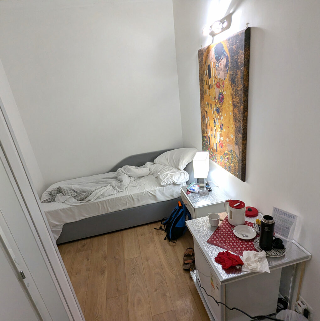 The hotel breakfast was fantastic too – Europe hotel breakfasts generally much better and healthier than in USA. The small interior room at Il Fascino Di Roma was comfortable.