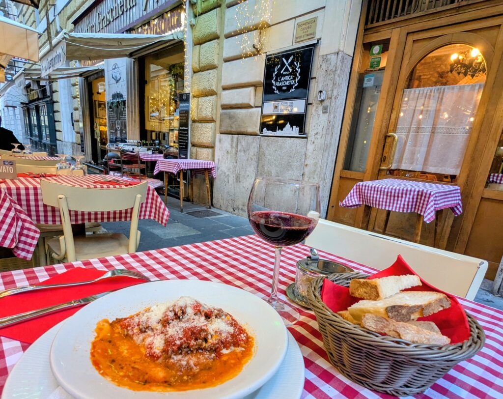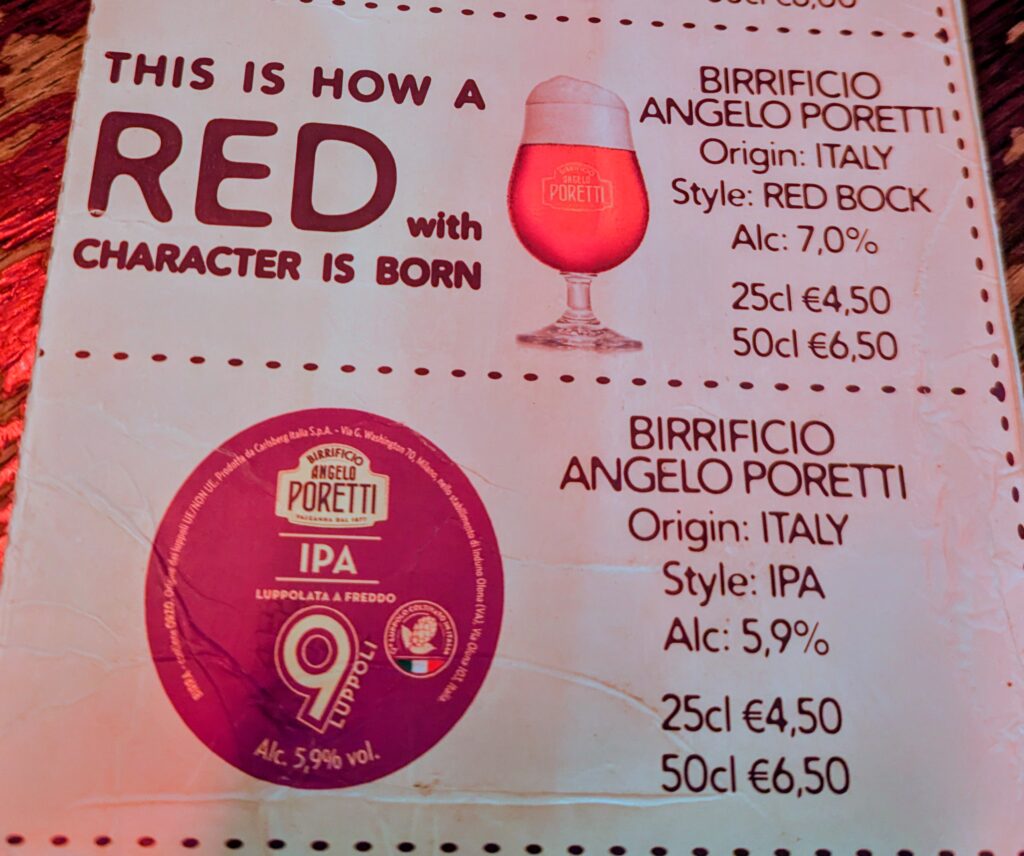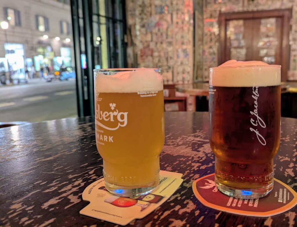 I found the perfect lasagna and red wine for dinner at L’Antica Fraschetta – quite a difference from Egypt food. Later I went for a beer at The Flann O’Brien. I couldn’t decide between two beers (Red Rock vs IPA), so I order a small glass of both: