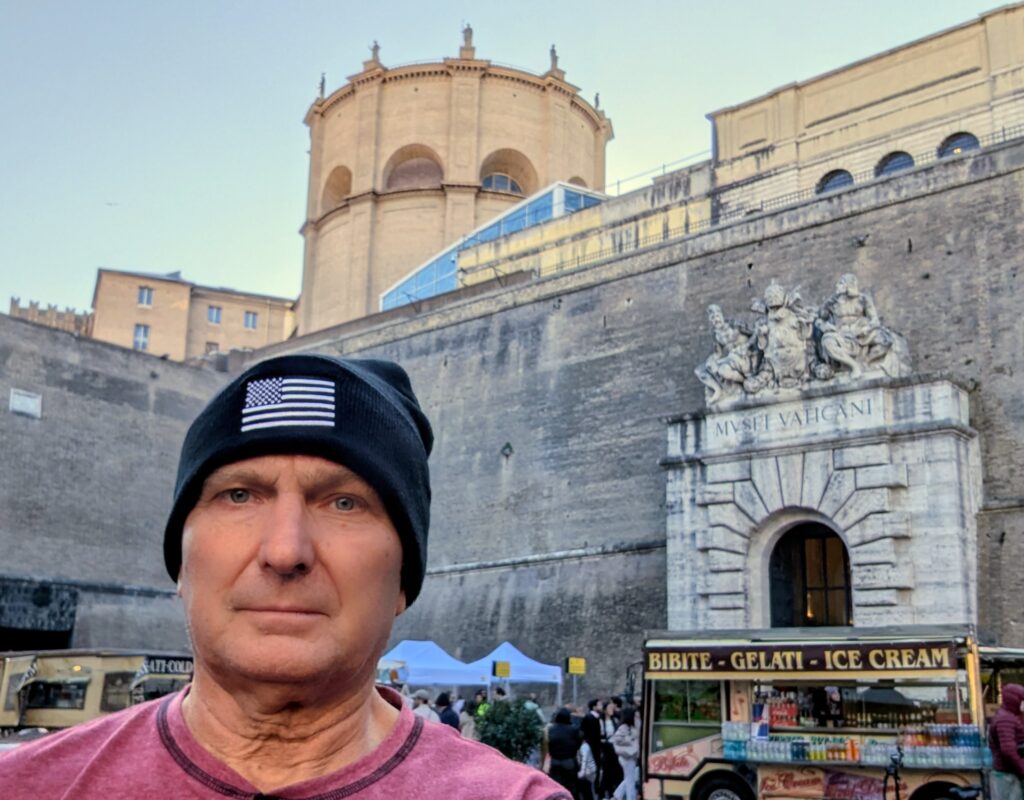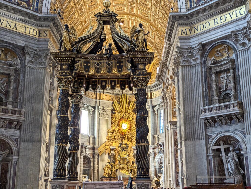 I picked a good time to visit because the Holy Door of St. Peter’s Basilica was opened by the Pope for a Catholic Jubilee year, which occurs every 25 years. The doors are symbolically opened to allow pilgrims to enter and pass through, which is associated with spiritual renewal and receiving plenary indulgences. The most recent Jubilee began in December 2024 with the opening of the Holy Door, and the doors will remain open throughout the 2025 Jubilee year until January 6, 2026.