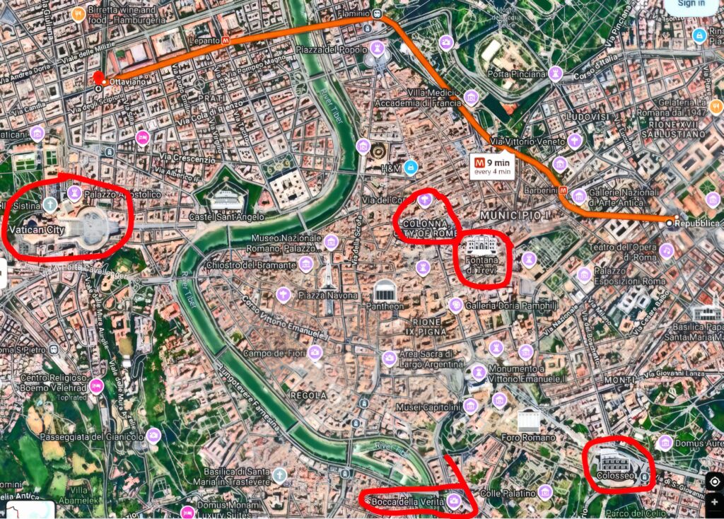 Thursday morning, I took Metro line A – aka pickpocket Metro – Repubblica to Ottaviano, to Vatican City for a guided tour of the museum, Sistine Chapel and the Basilica. The tour was run by “What a Life Tours” and was excellent.