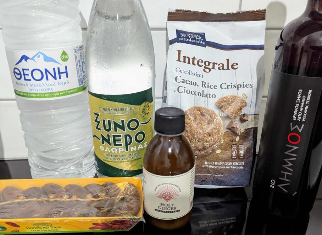 I shopped for water and snacks at Kampos organic store. The wine is “Limnio varietal that was the favorite of Aristotle.” Cool.