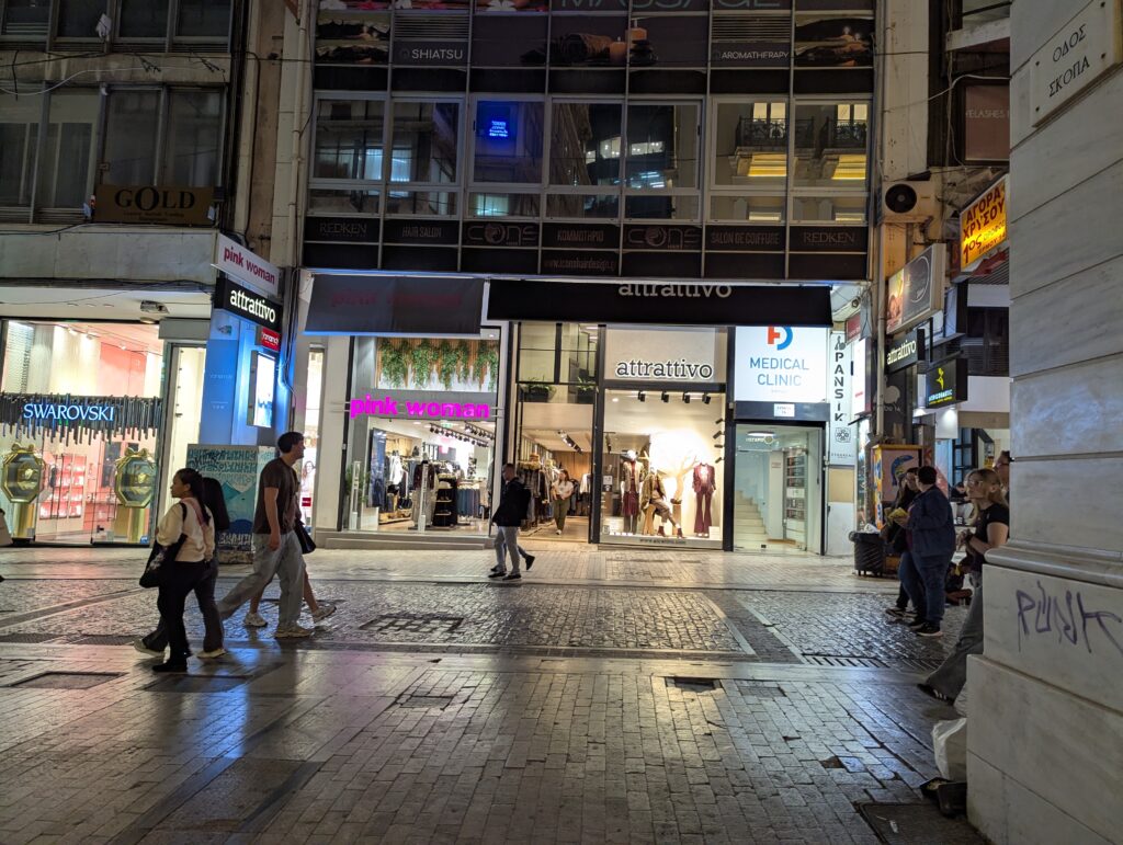Saturday night I didn’t sleep on the overnight flight from Sacramento to Newark. Then after the 10-hour layover I didn’t sleep on the plane Sunday night on the 10-hour flight from Newark to Athens. Noon Monday 11/3 I took the 30-minute train/metro ride from the airport to Syntagma station in the Plaka district. While parts of Athens are rough, this is a nice safe area with excellent walking and restaurants.