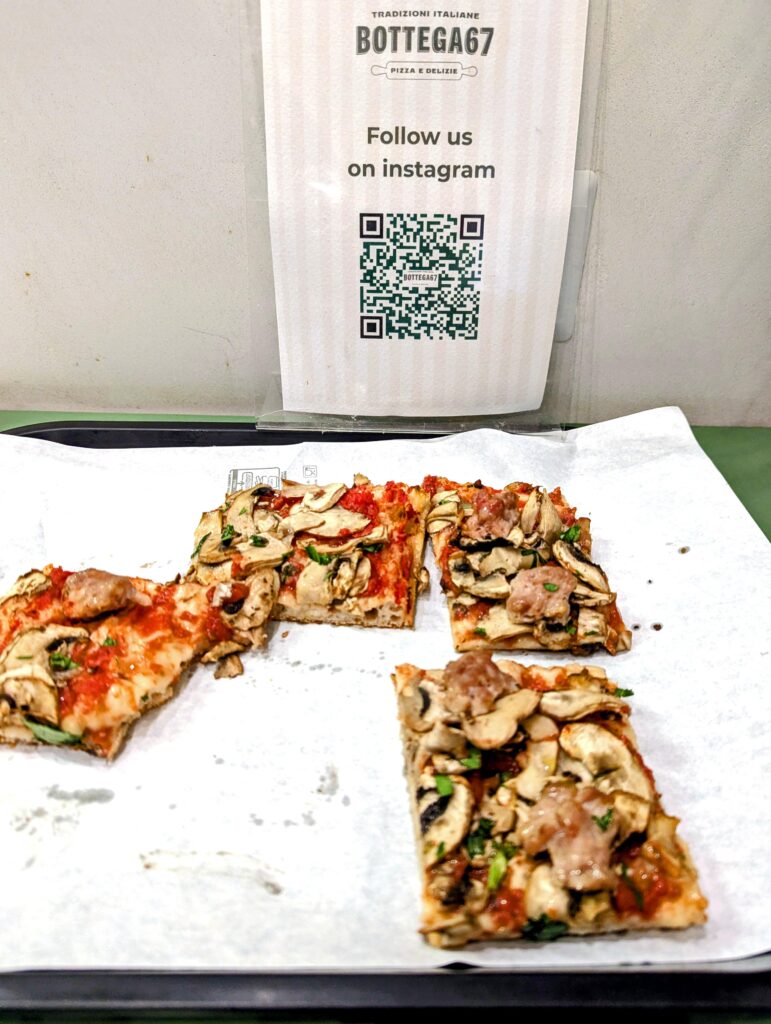 Then I proceeded to the Colosseum for my 3:00 p.m. entry ticket. I had not eaten yet, so I was fortunate to find a fast pizza place “Bottega67” before entering the Colosseum.