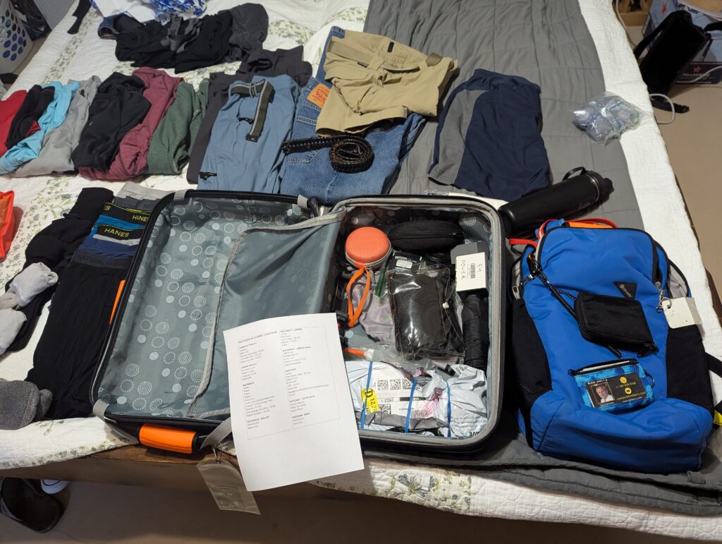 Later at the gate, “Paging passenger Berry.” I’m thinking, “Now what… did TSA rat me out?” But no – they asked if I’d be willing to move to an exit-row window seat – nice upgrade for a 10-hour flight to Dallas!