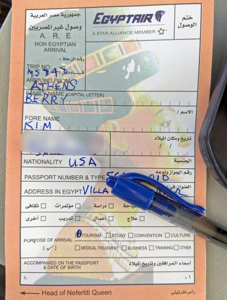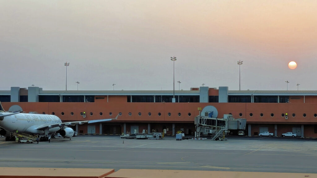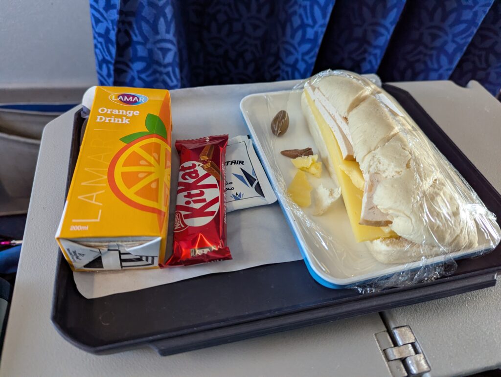 The Egypt Air meal was a kiddie box of fake orange drink, a KitKat, and a tasteless sandwich of squishy bread and processed meat. I didn’t eat any of it – and observed the same of other passengers. The Sunset at Cairo airport on stop-over to Luxor was nice.