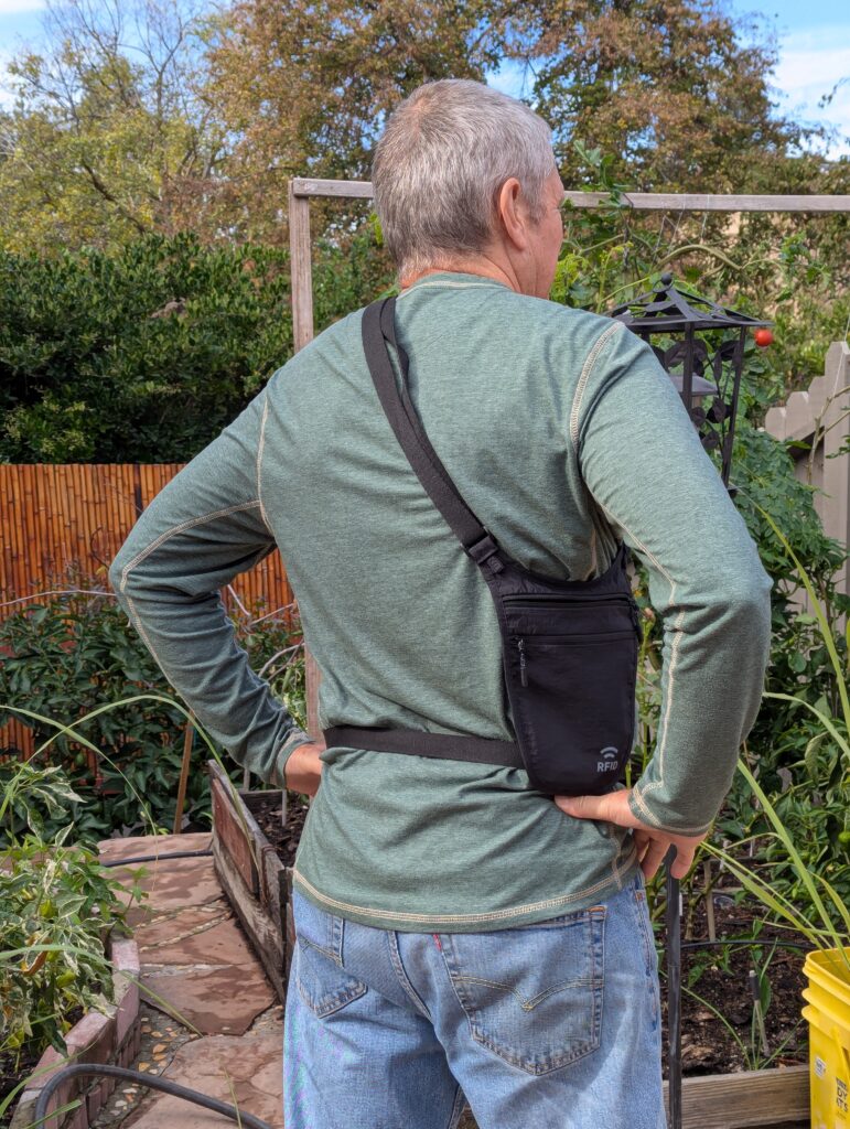 I kept my passport, cash, and credit card in this thin cloth pocket, under this shirt – mostly not visible. For TSA in Rome, I put the contents in my backpack and walked through the detectors with no “beeps.”