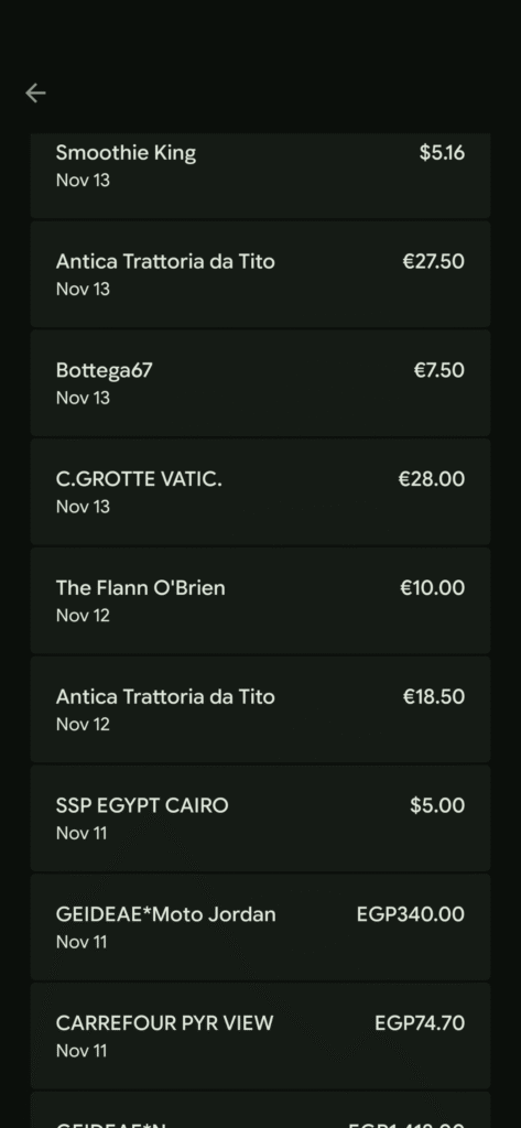 I’d read that EU is more advanced than USA. They often prefer contactless payments. Revolut is big there as is payment by phone. So, I set up Google Wallet and did make most payments by hovering my phone – no need to dig out credit cards. Nice that all payments are in Google Wallet history too.
